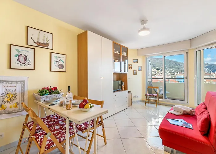 Open View In Center Menton - Happy Rentals apartment is located just 1.2 km from Plage des Sablettes Beach and merely a 5-minute walk from the Casino Beach. Staying in this apartment, nestled just moments from the Jardins Bioves, guests can relax on a terrace.